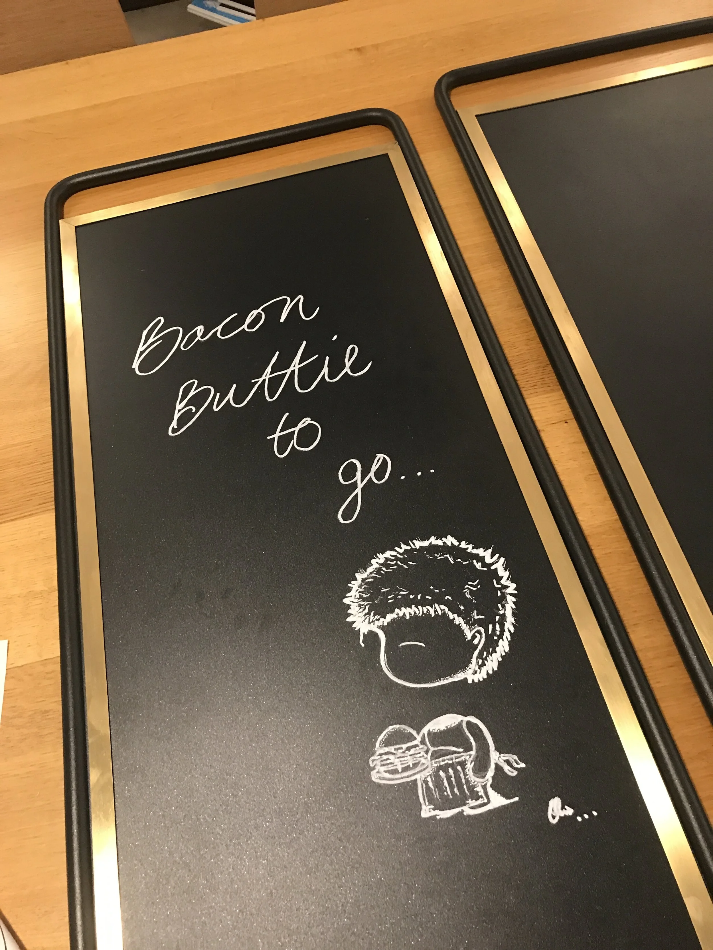 Commissioned work for 3 x A Boards and a Mini eLo drawing on butchers fridge, new experience working with restaurants.